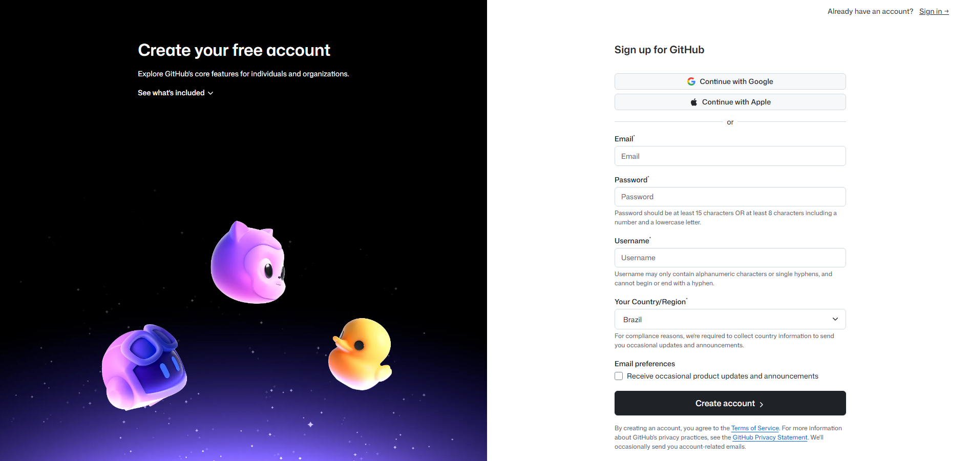 https://github.com/seu-usuarioFinalize o cadastro e confirme o email enviado pelo GitHub.